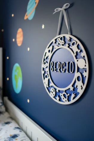 Cartel Madera Infantil Espacio Personalizado – Brilla en la Oscuridad
