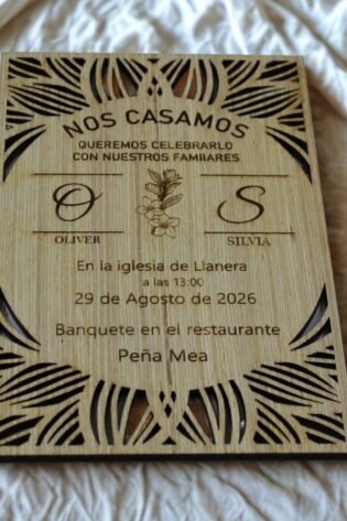Invitación de Boda Vertical “Modern Edge” – Elegancia y Diseño en Madera