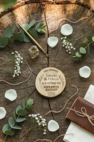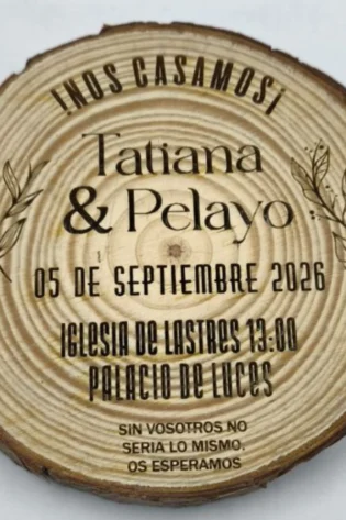 Invitación de Boda en Rodaja de Madera Natural – Esencia Rústica