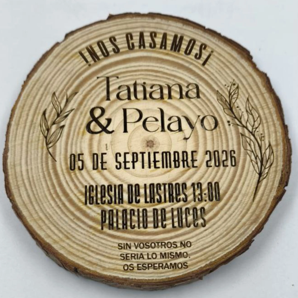 Piezas Únicas e Irrepetibles: Al tratarse de rodajas de tronco natural, no hay dos invitaciones iguales. Cada una presenta sus propias vetas, nudos y corteza, haciendo que cada invitación sea una obra de arte exclusiva.