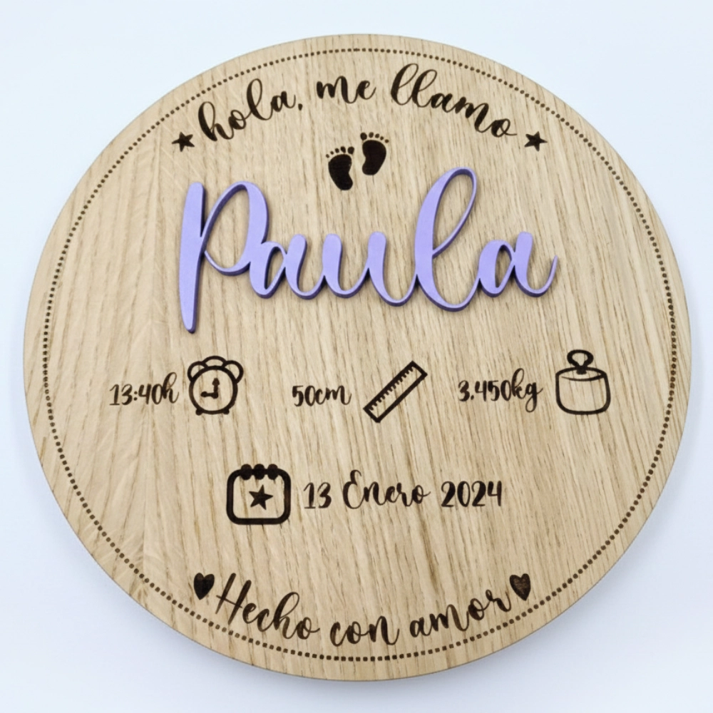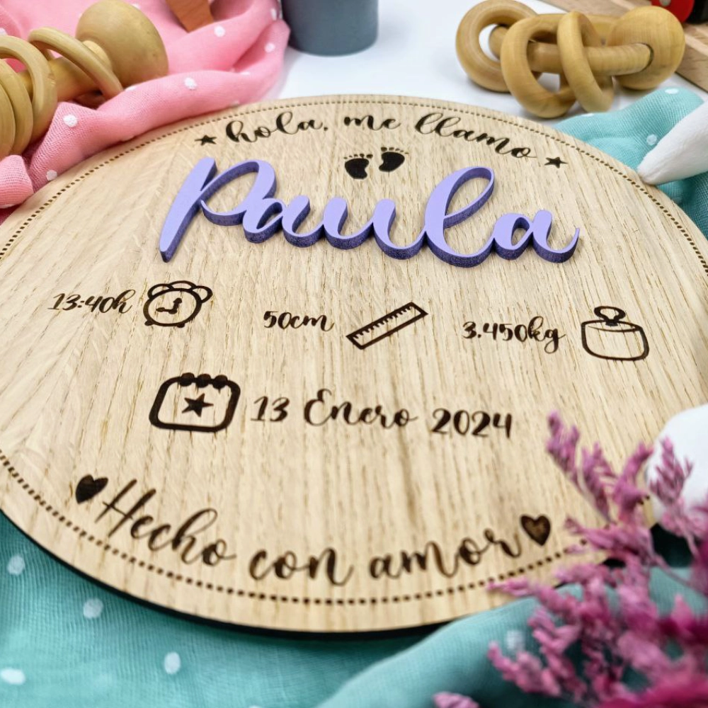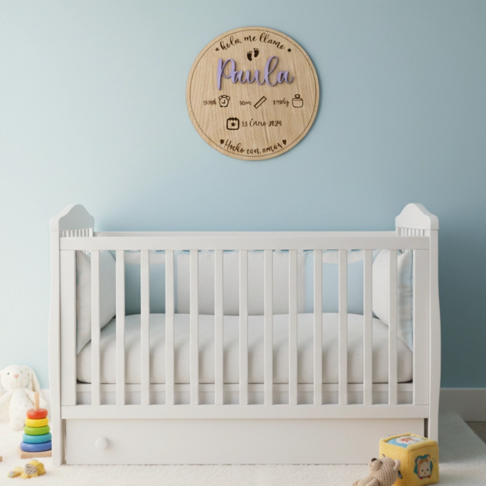 No hay momento más especial que el nacimiento de un hijo. Nuestro natalicio redondo de 20 cm está diseñado para inmortalizar esos detalles que cambian tu vida en un segundo: el peso, la medida, la fecha y la hora exacta en la que todo empezó.